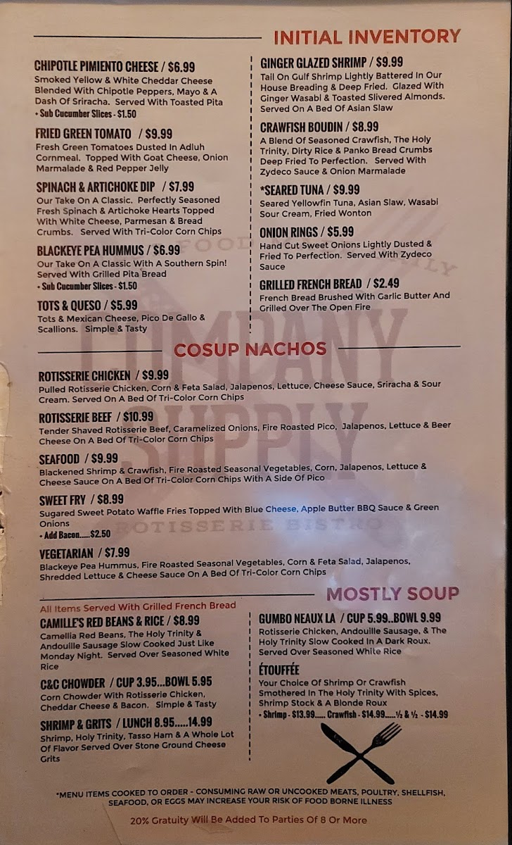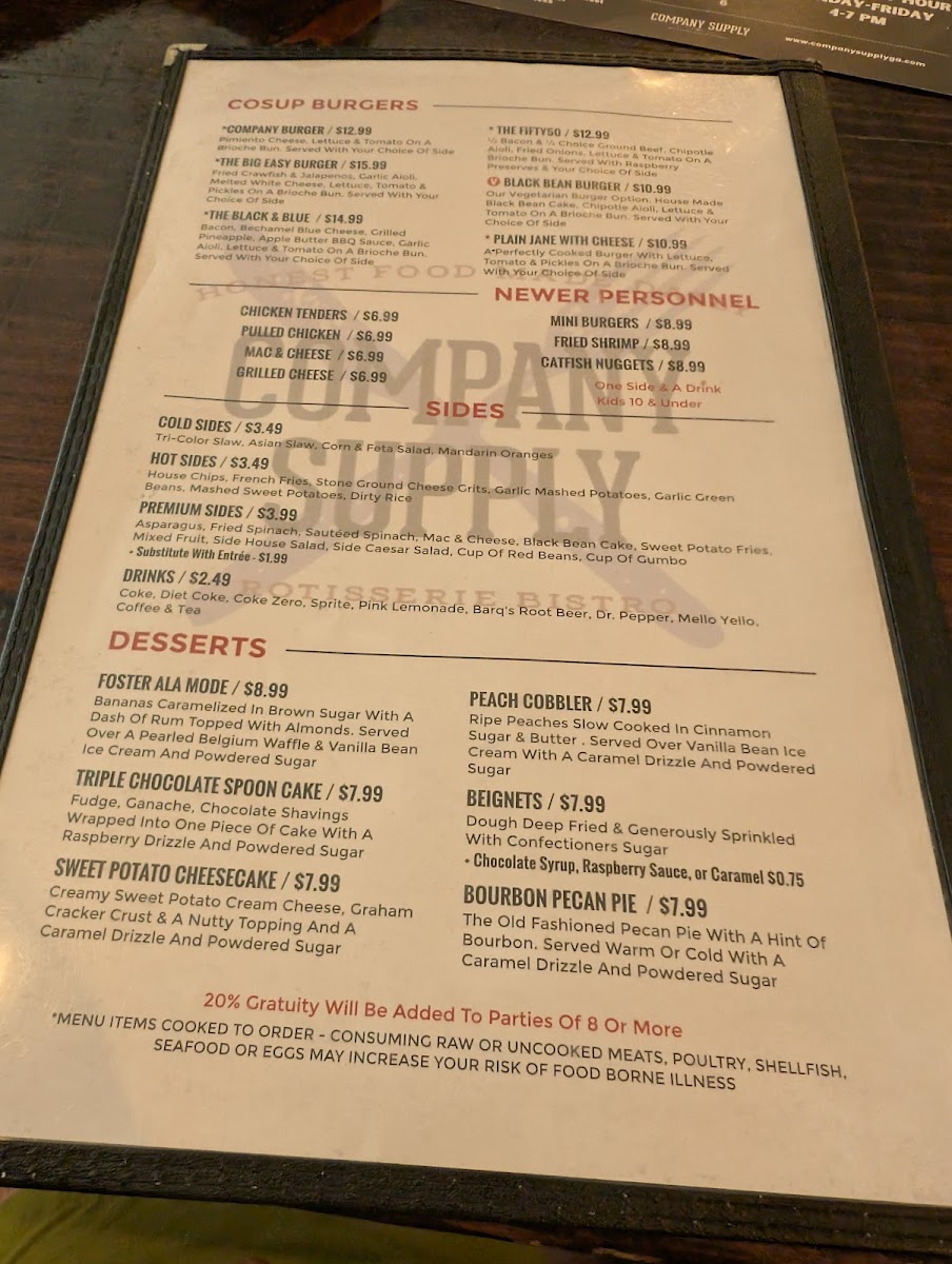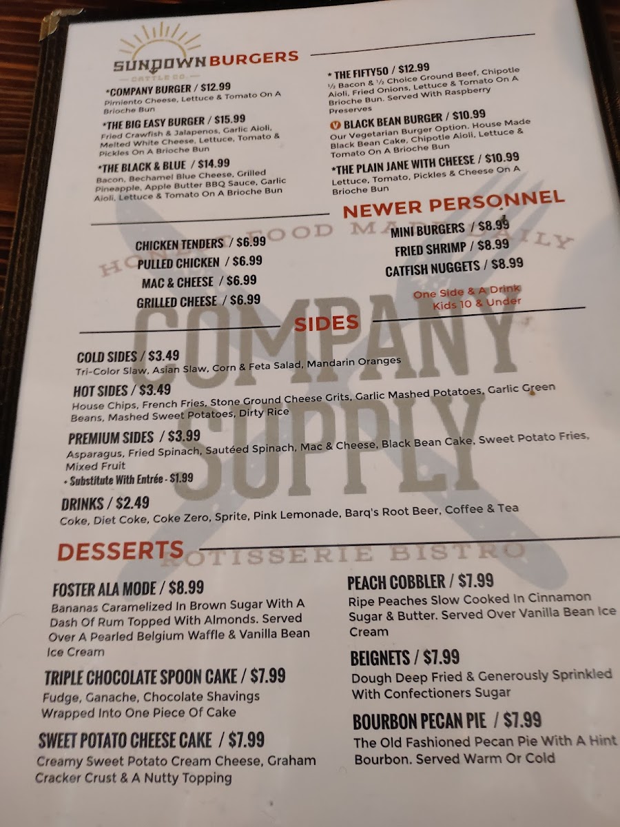 Welcome to the Company Supply Menu, where you can dive into a delightful selection of delicious dishes that will surely satisfy every craving. Located at 107 W Jackson St in Dublin, GA, this place offers a cozy and inviting atmosphere for all to enjoy. From classic comfort food to creative twists, the menu is filled with options that cater to various tastes and dietary preferences.