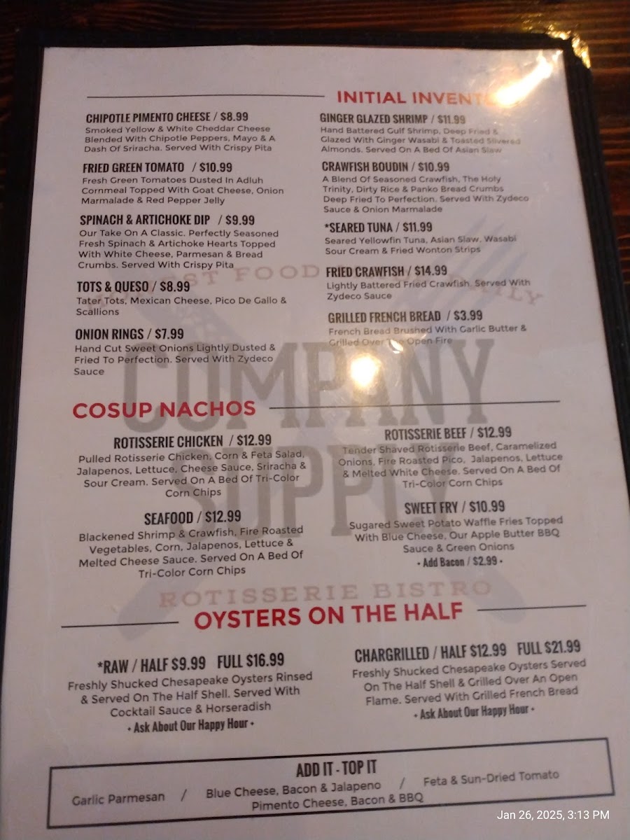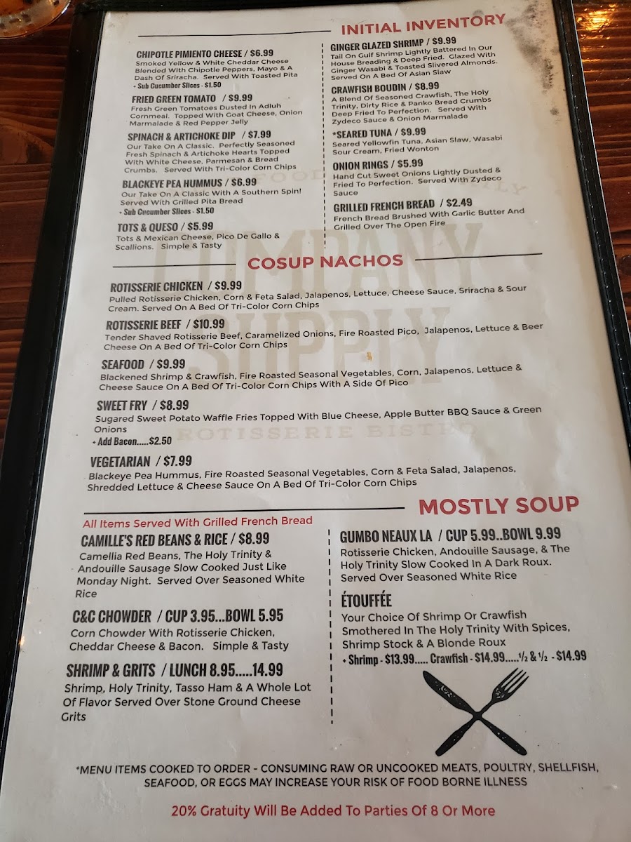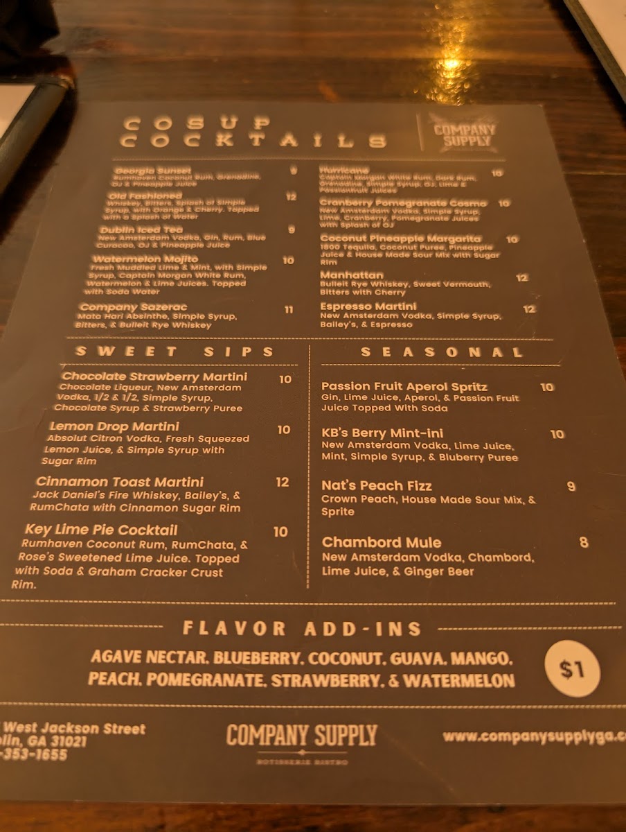 Welcome to the Company Supply Menu, where you can dive into a delightful selection of delicious dishes that will surely satisfy every craving. Located at 107 W Jackson St in Dublin, GA, this place offers a cozy and inviting atmosphere for all to enjoy. From classic comfort food to creative twists, the menu is filled with options that cater to various tastes and dietary preferences.