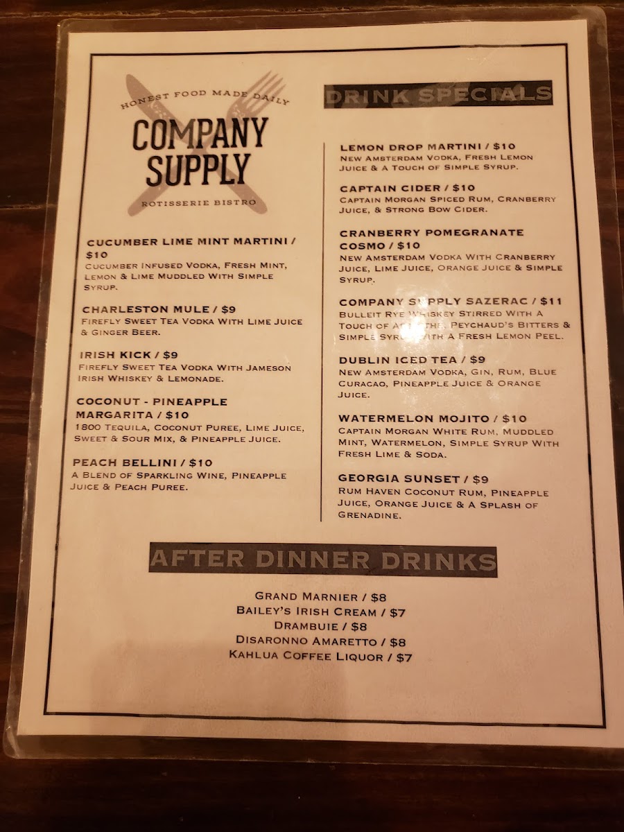 Feel free to explore and treat yourself to an unforgettable meal at Company Supply.